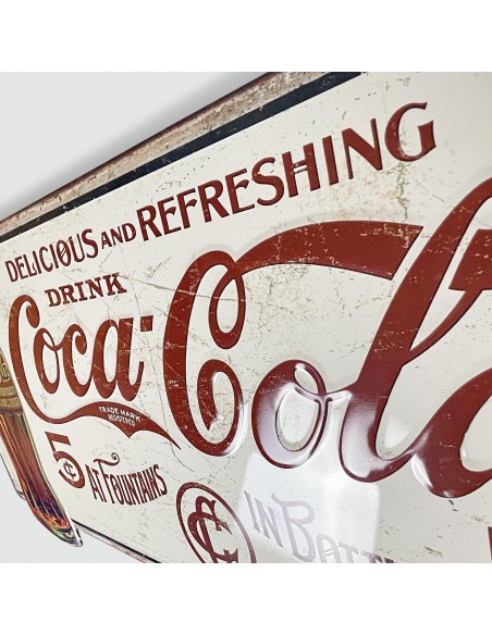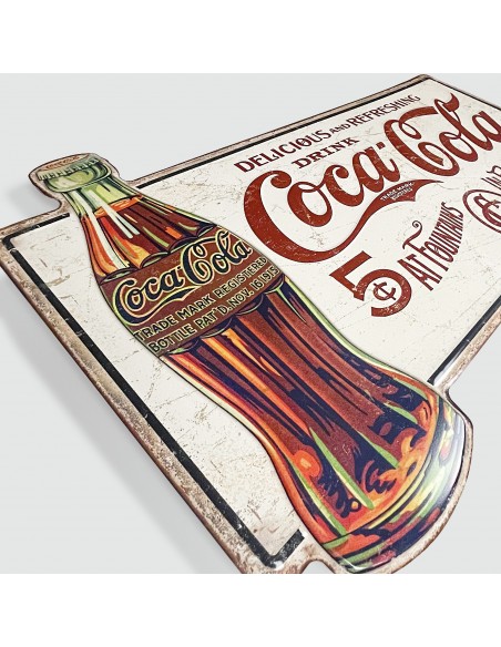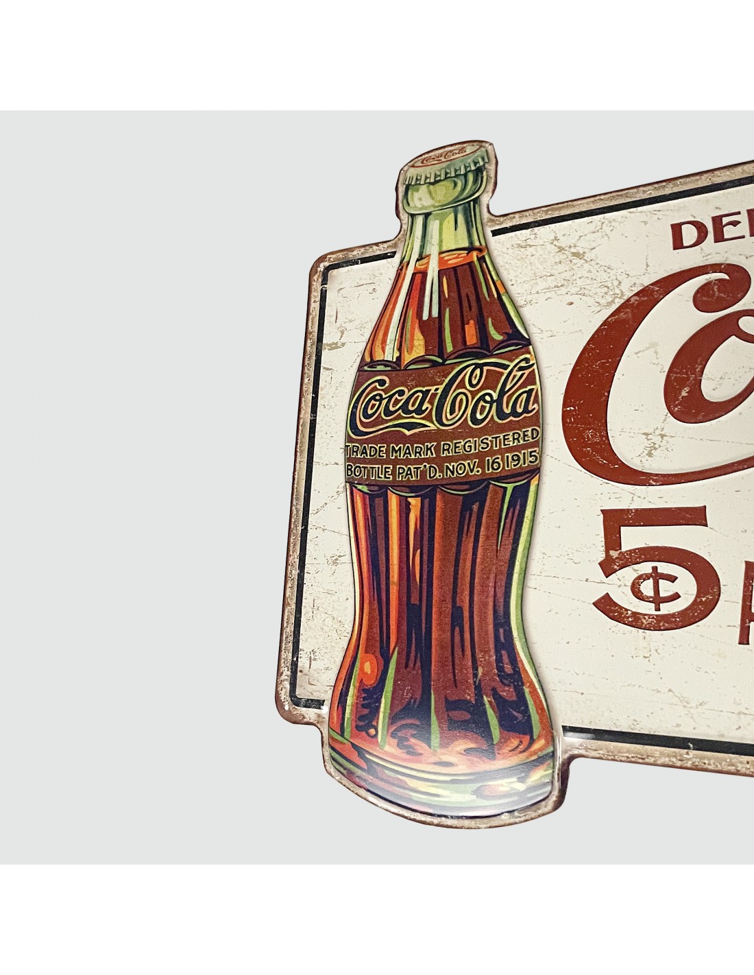 28.5" x 17.375" Coca Cola Delicious 5 Cents Premium Large Embossed Aluminum Metal Tin Tacker Sign - SIGNBOX-QLN720354