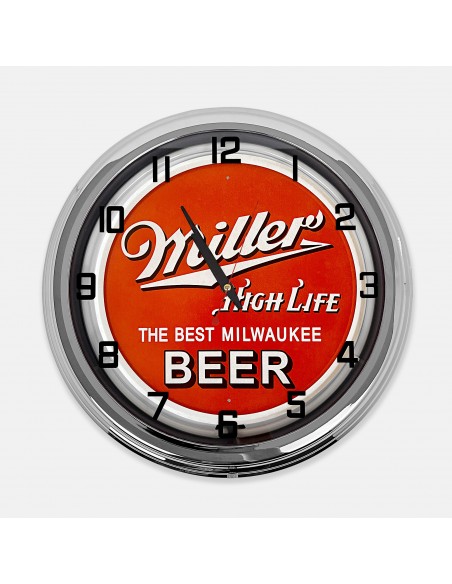 18" Miler High Life The Best Milwaukee Beer Metal Sign Designed White Neon Clock