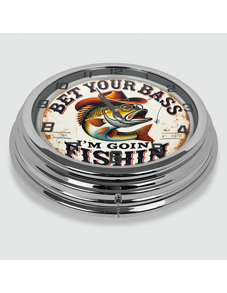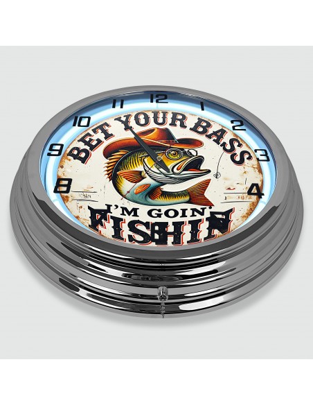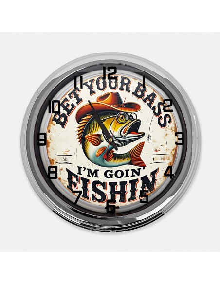 18" Bet Your Bass I'm Goin Fishin Metal Sign Designed White Neon Clock - SIGNBOX - QLN720461