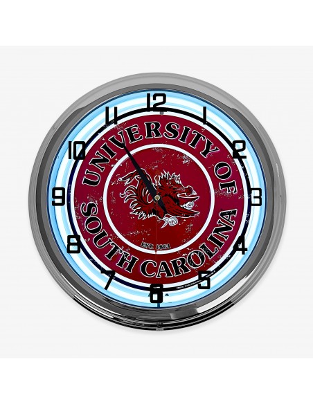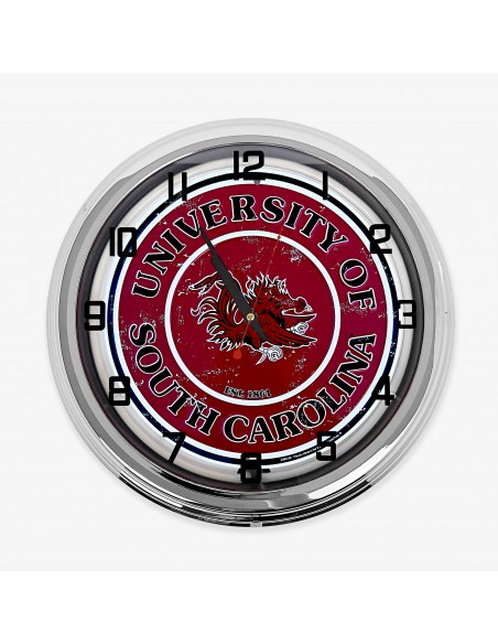18" University Of South Carolina Gamecocks Metal Sign Designed White Neon Clock SIGNBOX