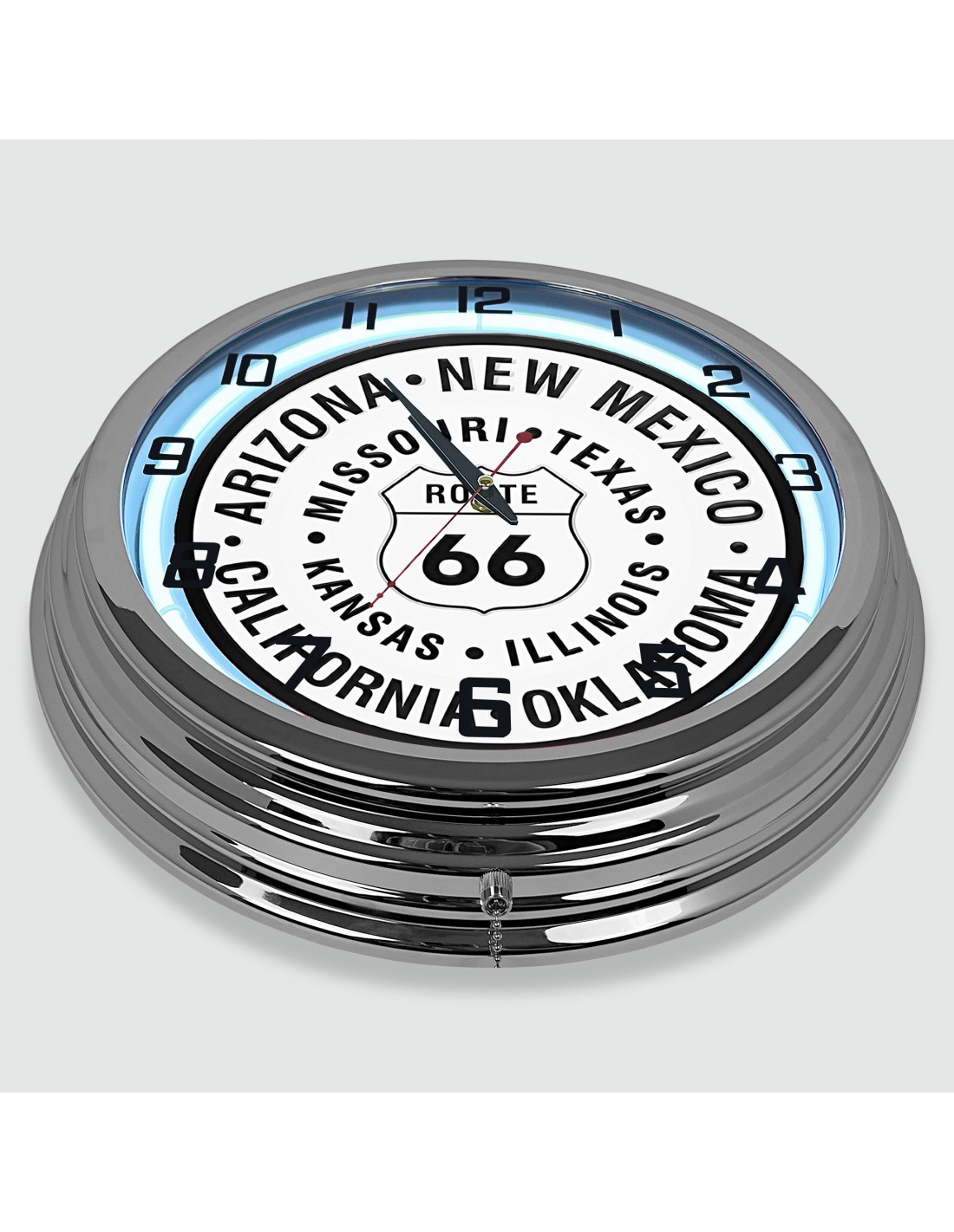 18" Route 66 Metal Sign Designed White Neon Clock - SIGNBOX-QLN720464